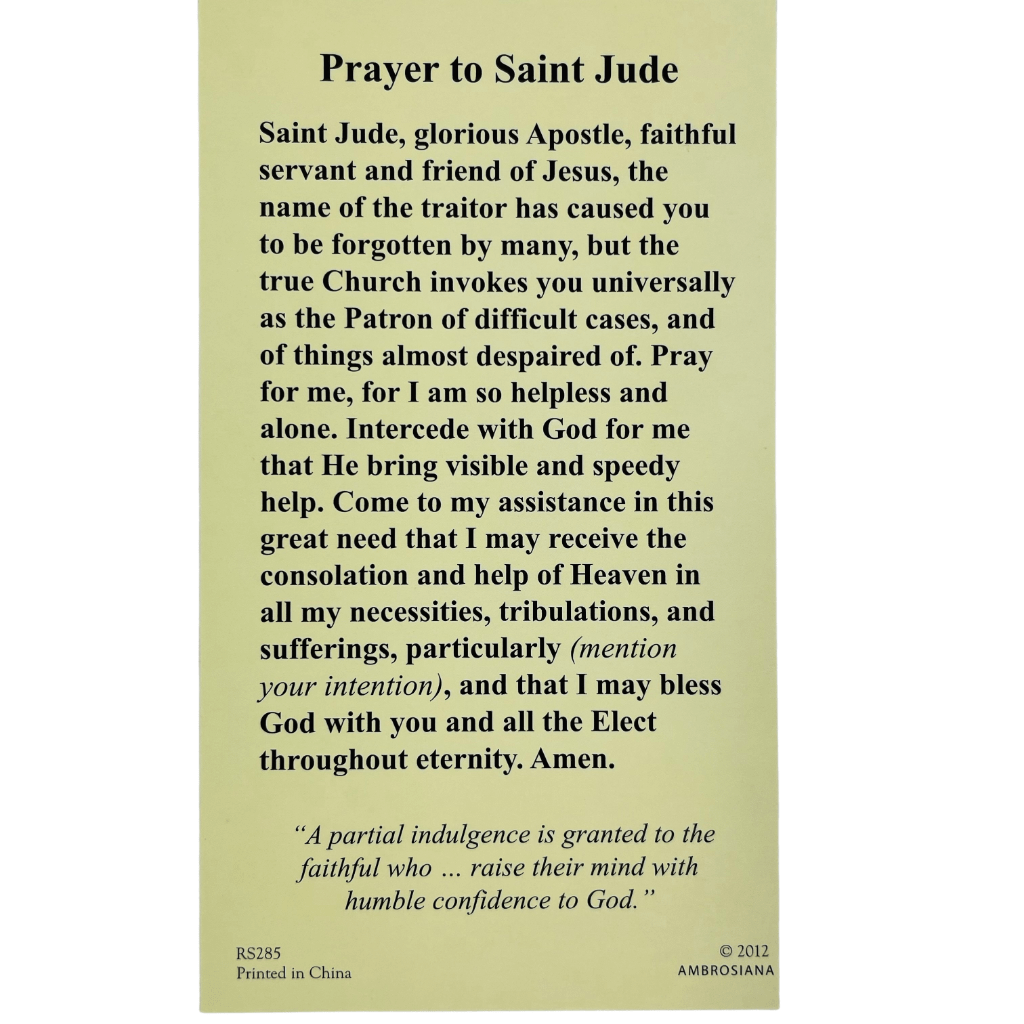 This cardstock holy card features the St. Jude on the front. The back includes a prayer to St. Jude.