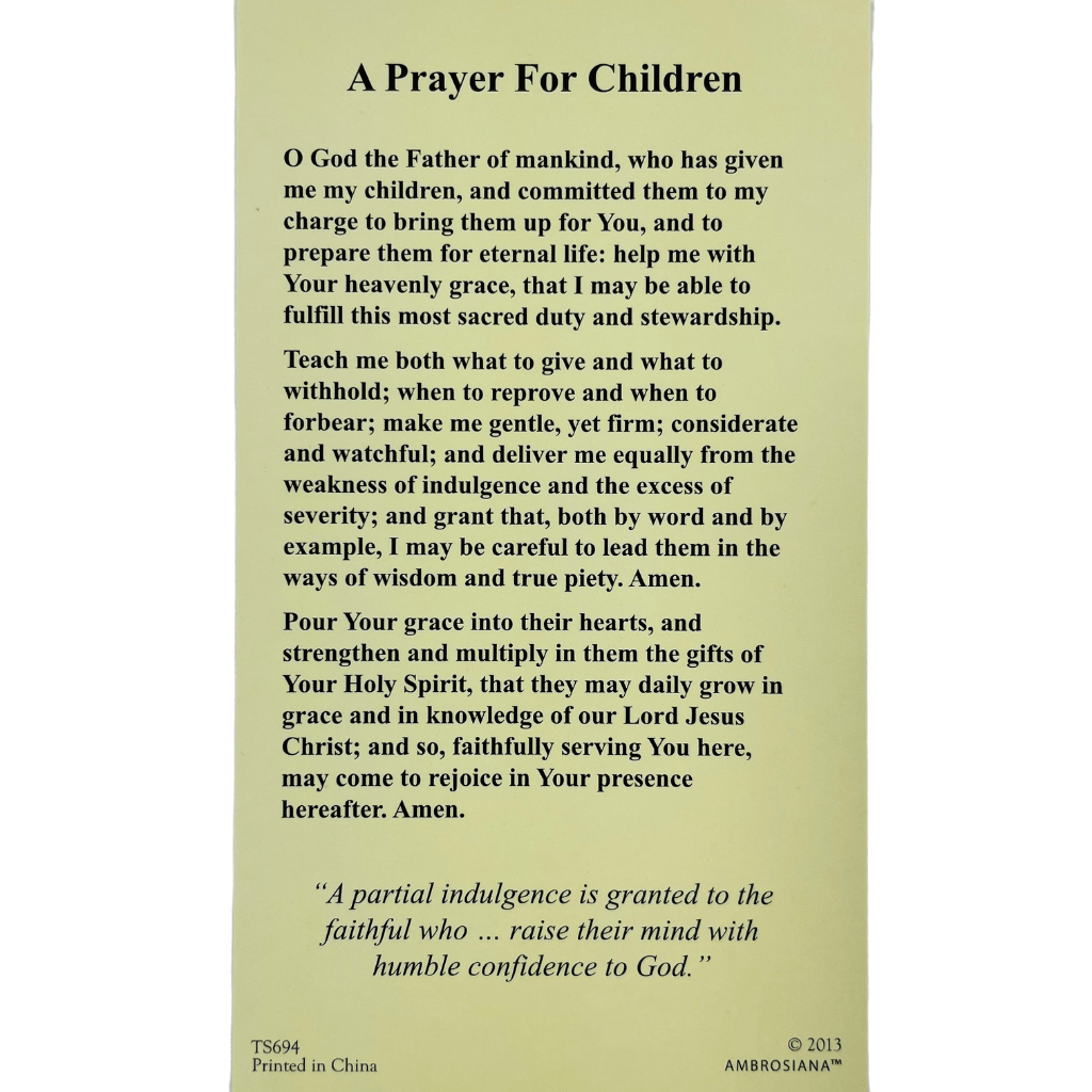 This cardstock holy card features St. Nicholas on the front.  The back includes a prayer for children.